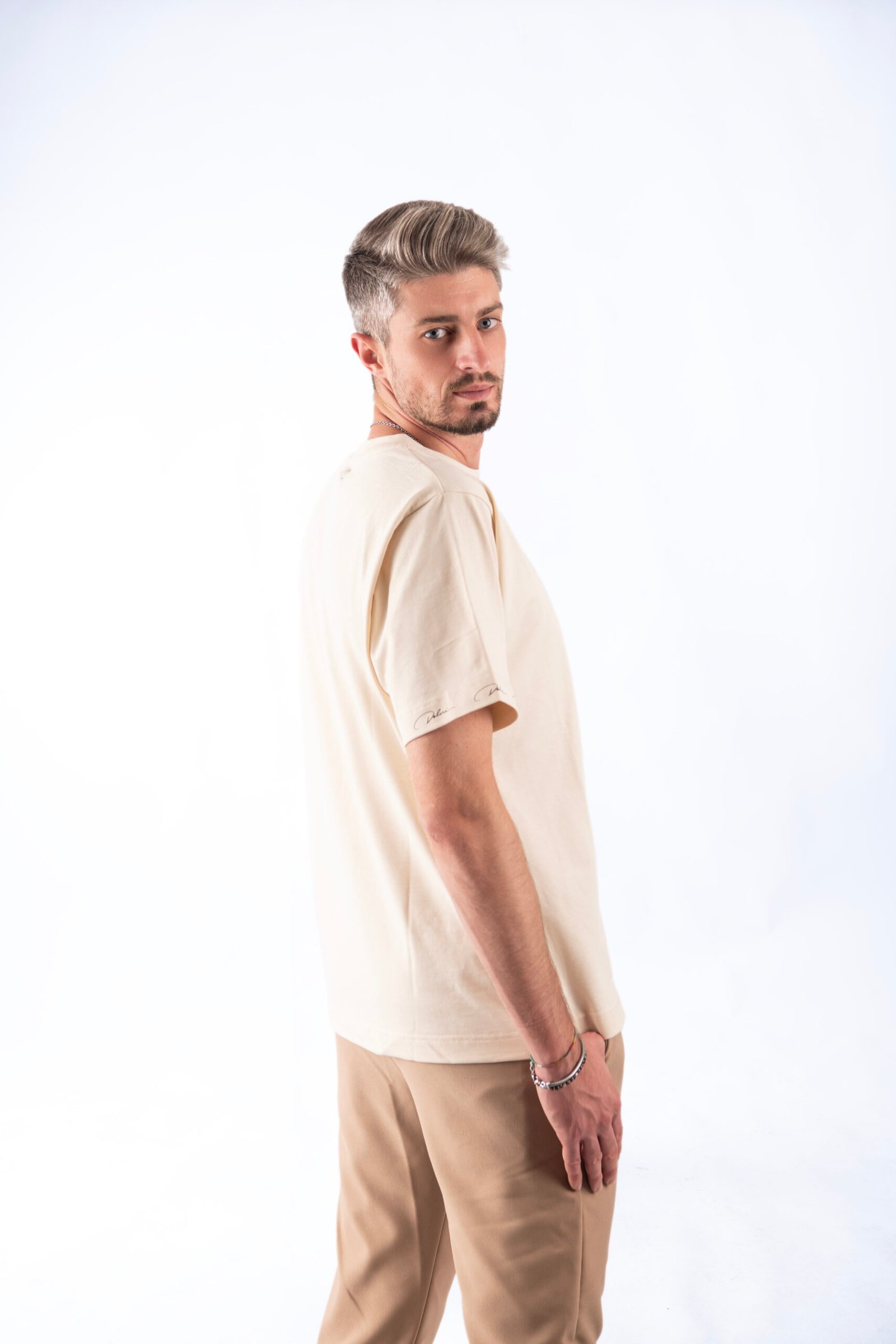 Recensisci per primo “T-Shirt Icona in Cotone Pregiato Beige con Ricamo a Contrasto”
